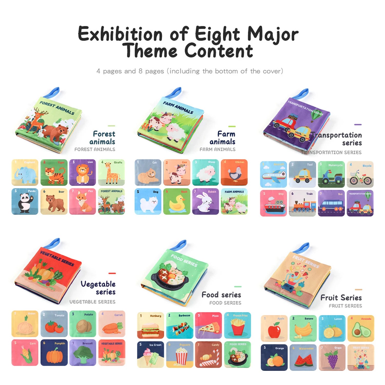 These cloth books cover eight exciting topics — fruits, vegetables, animals, vehicles, and more. With colorful illustrations and simple words, they make learning fun and easy to understand. Soft, safe, and durable, they’re the perfect way to spark curiosity and support early development